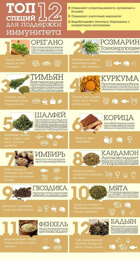 Мы собрали небольшую подборку специй – которые помогут повысить иммунитет. А, также продуктов-антибиотиков, которые так же помогут в поддержании здоровья.